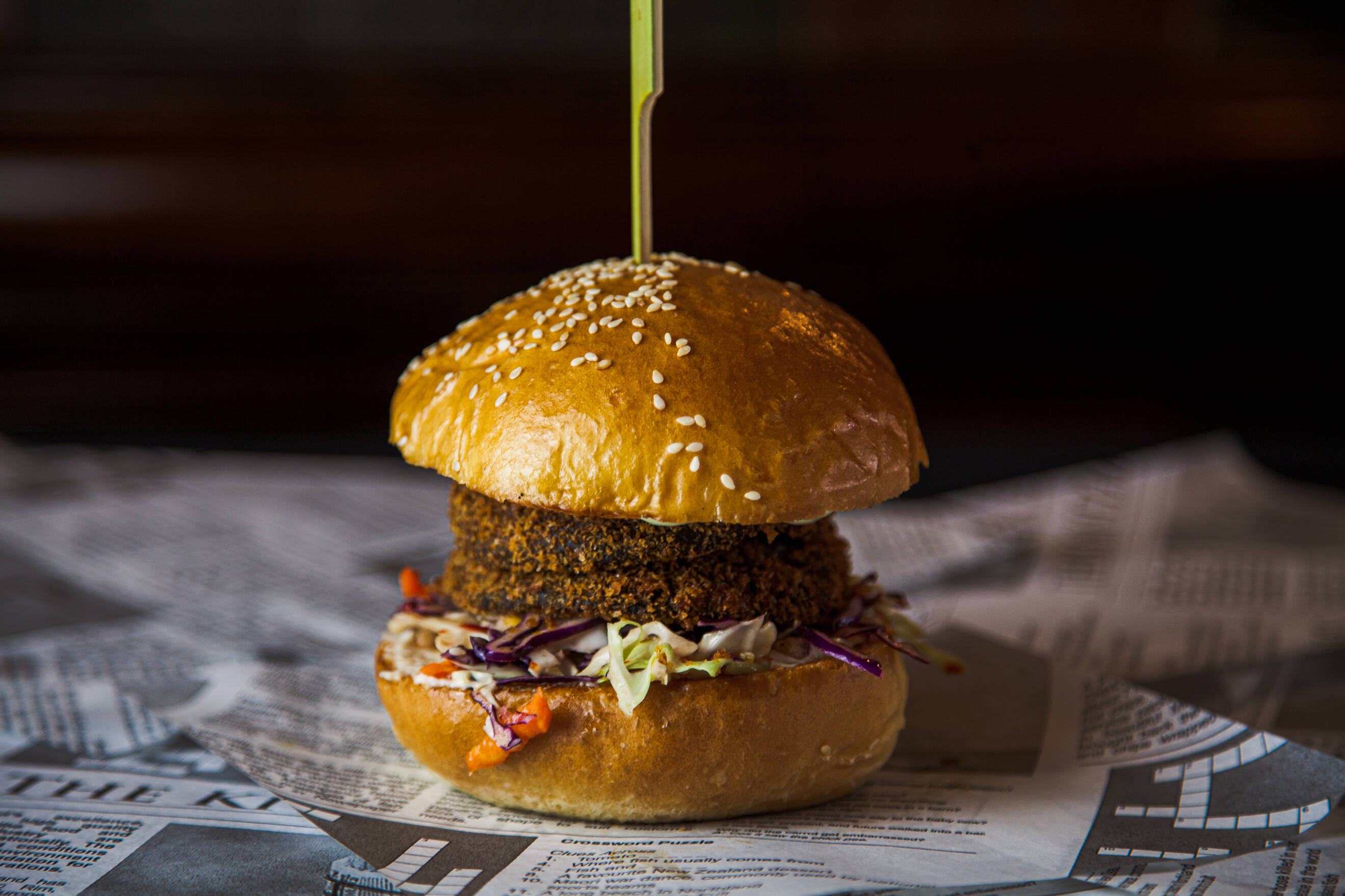 Crumbed mushroom, asian slaw & wasabi mayoSWAP TO BLACK BEAN PATTY?