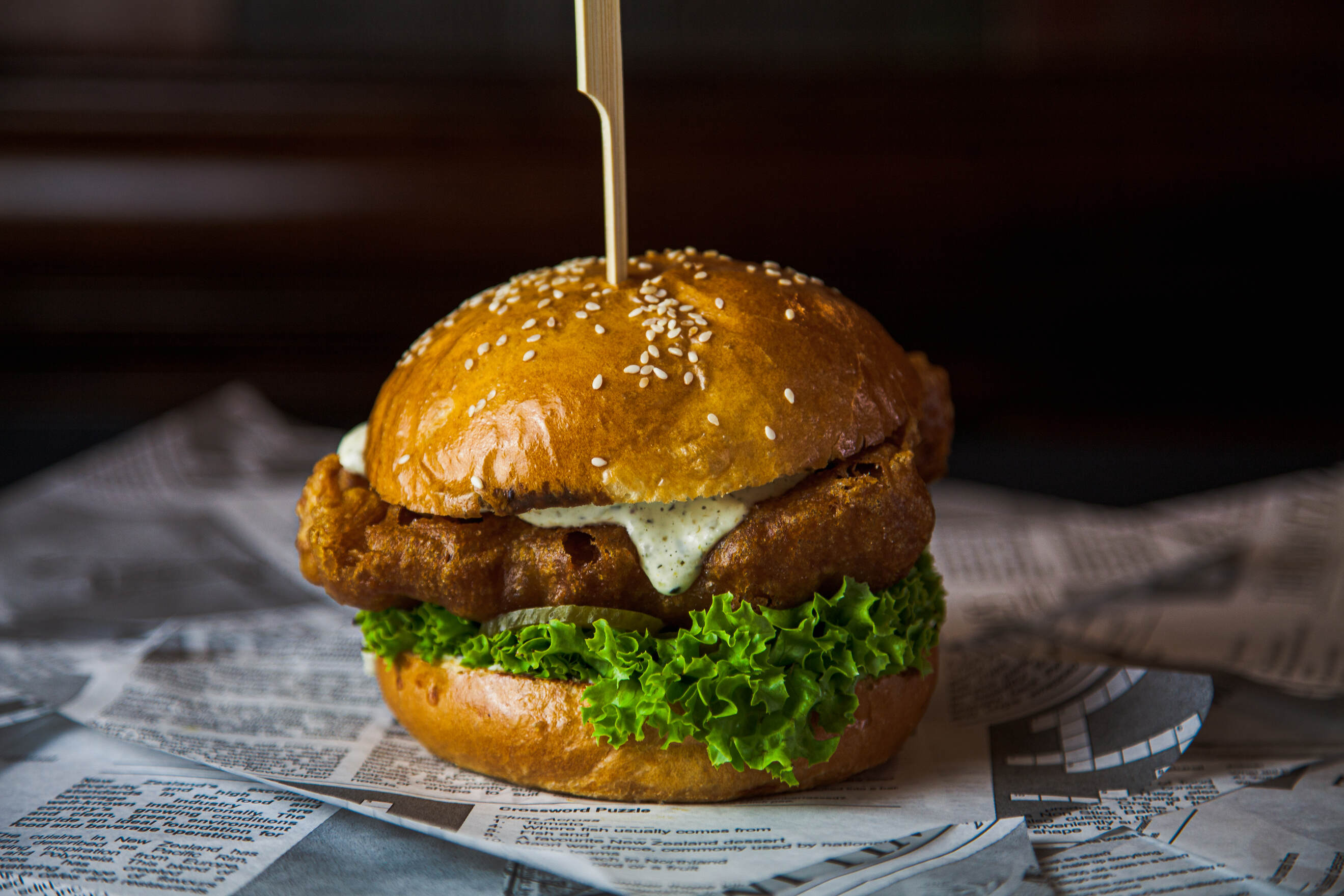Beer battered catch of the day, lettuce, pickle & tartar sauceSWAP TO BLACK BEAN PATTY?